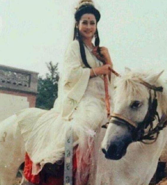 【《西游记》老照片:观音菩萨骑白龙马,八戒做的经典造型笑喷我了】观音菩萨左大玢表示自己骑着白龙马也算是体验了一把当唐僧的感觉,观音的坐骑变成了白龙马了,哈哈!【图片来源于网络】