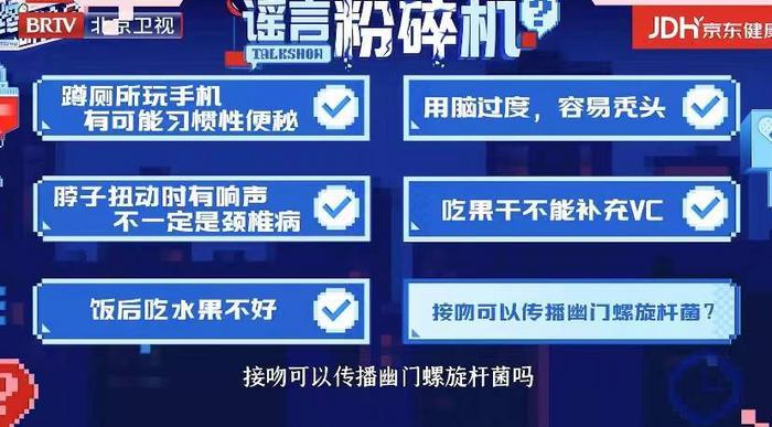 在节目中,还穿插出现了“谣言粉碎机”环节,通过综艺问答比拼的方式直接辟谣了大众生活中耳熟能详的健康谣言,被不少观众津津乐道。“健康年终听诊会”的意义不仅在于以别具一格的节目形式吸引大家关注自身存在的诸多健康焦虑,亦呼吁人们应以积极科学的心态直面健康问题,更“因材施教”式地给出有效解决这些焦虑和问题的方法,充分发挥了健康主题的文艺节目寓教于“乐”的文化传播价值。