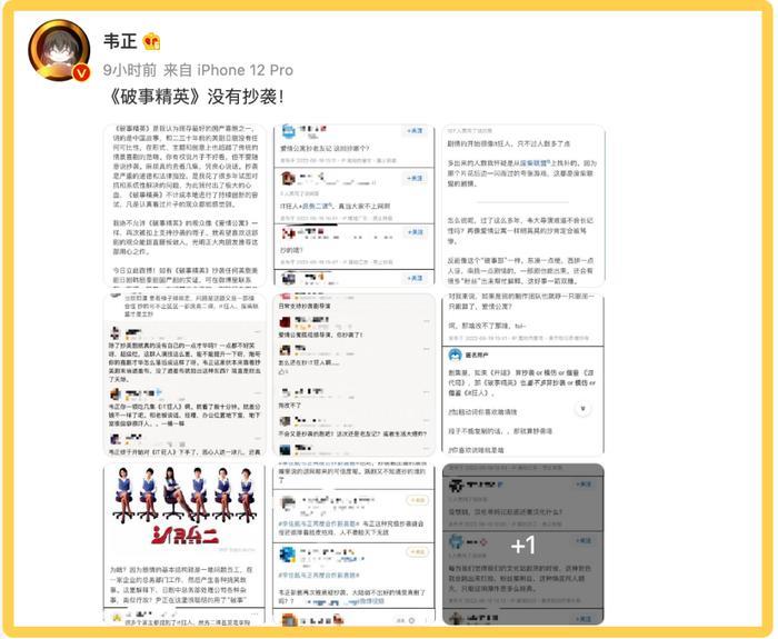 对比之下,韦正导演截图中关于《破事精英》涉嫌抄袭的指控,缺乏具体论据支撑。