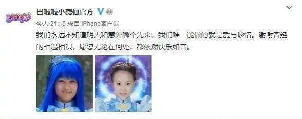 1月2日晚上,《巴啦啦小魔仙》官方微博发文怀念孙侨潞:“我们永远不知道明天和意外哪个先来,我们唯一能做的就是爱与珍惜。谢谢曾经的相遇相识,愿您无论在何处,都依然快乐如昔。”
