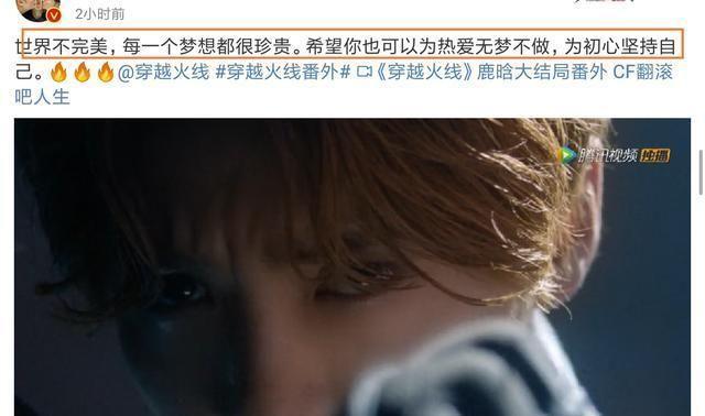 《穿越火线》结局!鹿晗发文:为初心坚持自己。网友:你真的很棒