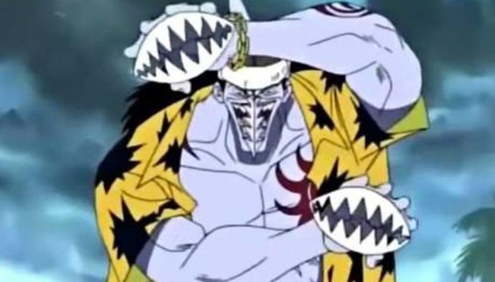 第四名,大白鲨鱼人,新鱼人海贼团的船长,为人心狠手辣,实力算不上出众,但是在吃下“凶药”后实力猛增,也会使用鱼人空手道,一番激斗后被路飞打败!