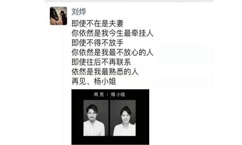 据悉,该事件的起因,源自于“海王”刘烨(高级橱柜设计师,衣着精致,面容帅气)发在微信的一条朋友圈:即使不是夫妻,你依然是我今生最牵挂人;即使不得不放手,你依然是我最不放心的人;即使往后不再联系,依然是我最熟悉的人,再见、杨小姐!