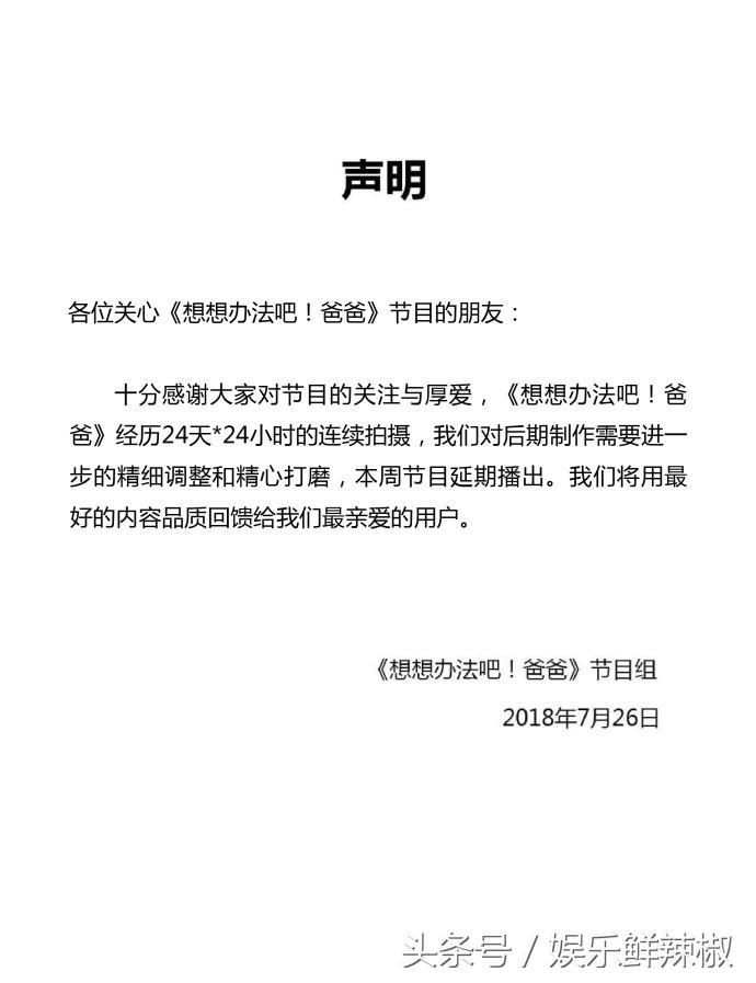 此前鸽了网友无数次的明星亲子秀真人秀《想想办法吧爸爸》终于正式确定档期为9月6号。
