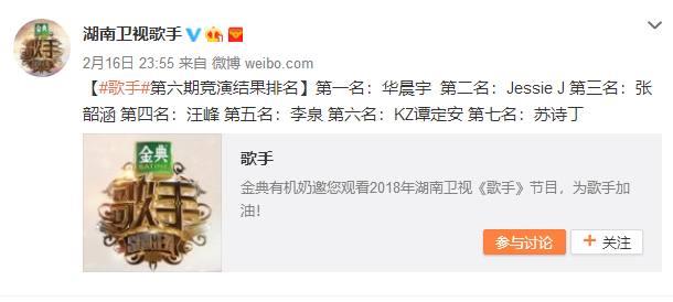 《歌手》第六期排名公布,网友:赢家和输家一目了然