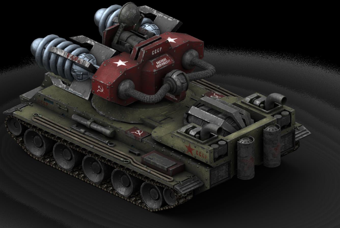 苏联的其他阵营甚至是盟军在俘获俄罗斯的作战实验室后可以生产该车。另外,遭遇战中的升级箱可能开出该车。它的速度很快,可以碾压敌人,武器对步兵、载具和建筑都有效。尽管多人游戏的加载界面显示它能使敌人的载具瘫痪,但由于《命令与征服2:泰伯利亚之日》中的EMP机制没能运用到红警2中,所以实际上没有这个功能。