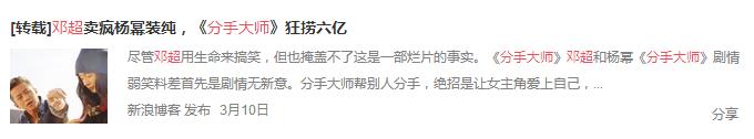 电影《分手大师》虽然口碑不高,在豆瓣只有5.1的评分,但明星效应,他票房很高啊!