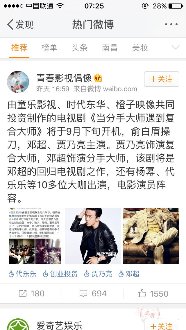 《分手大师2》9月开拍,邓超贾乃亮杨幂超强阵容?