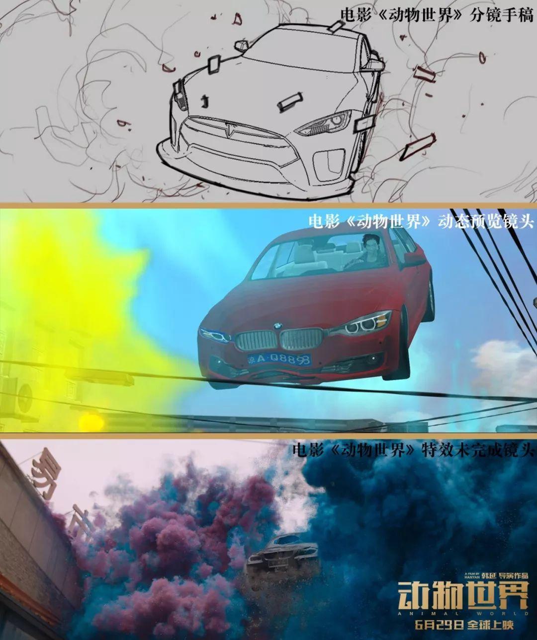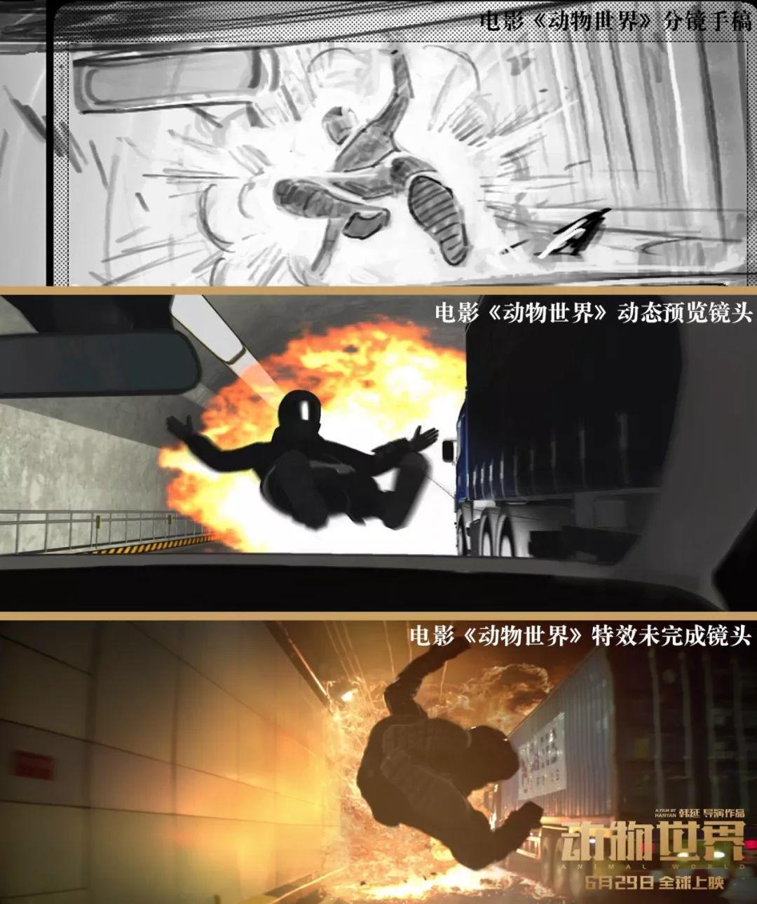虽然在《动物世界》的预告和制作揭秘特辑中,看到的这段追车片段只有短短的几秒时间,但是在了解了它背后的制作过程,不难发现这其中导演韩延的这个巧思也是很冒险的,从构思到执行的难度还是很大的,为了尽可能地还原自己想达到的效果,与整个视觉团队默契配合,从乐高试片到动态预览期间间也经历了无数次的反复修改,拍摄时的难度也是之前没有遇到过的。