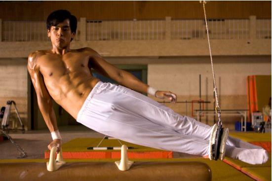1.为了拍这部电影,他苦练了八个月,每天几乎十多个小时的体操练习。