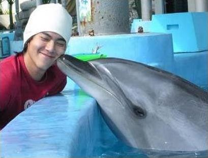拍电影《海豚爱上猫》时,他戏演完了,海豚训练师的资格证也到手了。