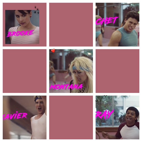 紧接着画面切换到几个主演在同一个健身房大跳健美操,每个人的造型都极具特色充满年代感,眼尖的盆友可能已经发现上一季的恶魔之子的Cody Fern这次也是主要角色之一。
