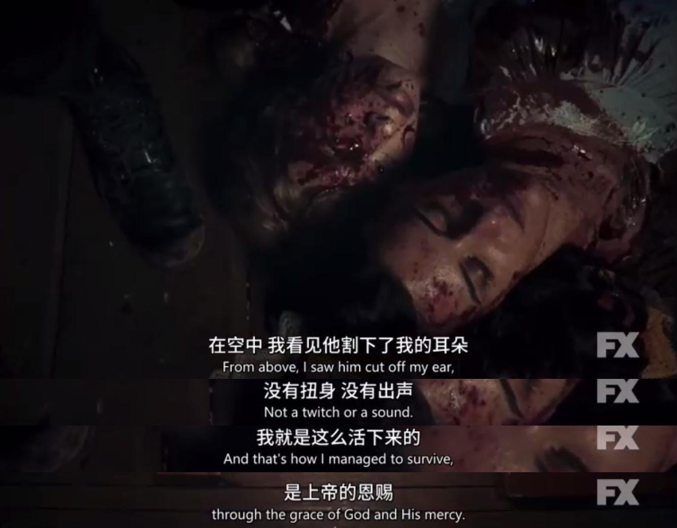 这次第一集开头就是一个浑身叮叮当当响的人来了场大屠杀,事后还变态的将受害者的耳朵作为纪念品串起来。但是其中一个奇迹般没死,于是有了后面的剧情。