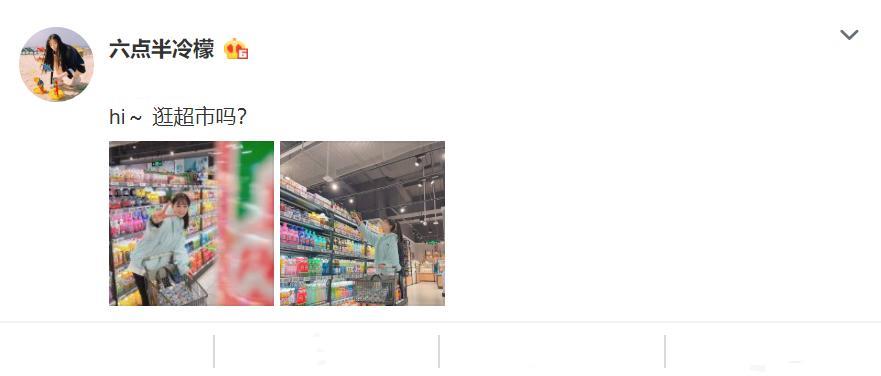12月6日消息,近日,《陈翔六点半》演员冷檬,在某社交平台晒出两张逛超市的照片,并配文:“hi~ 逛超市吗?”
