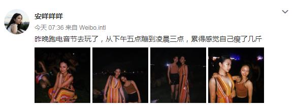 今日,黄安仪在微博晒出自己与朋友一起参加音乐节的照片,照片中的她穿着十分清凉,裙子颜色也十分鲜艳,大秀完美身材。