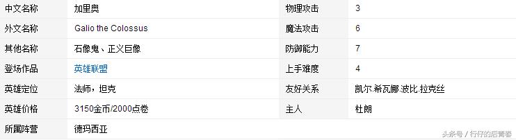 加里奥是2010年8月加入英雄联盟第57位英雄,在S7进行了重做。隶属德玛西亚,正义巨像属于一个坦克型肉盾,充当前排的作用。