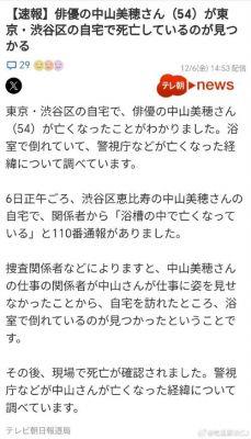 日本演员中山美穗在家中去世:疑因热休克或溺水