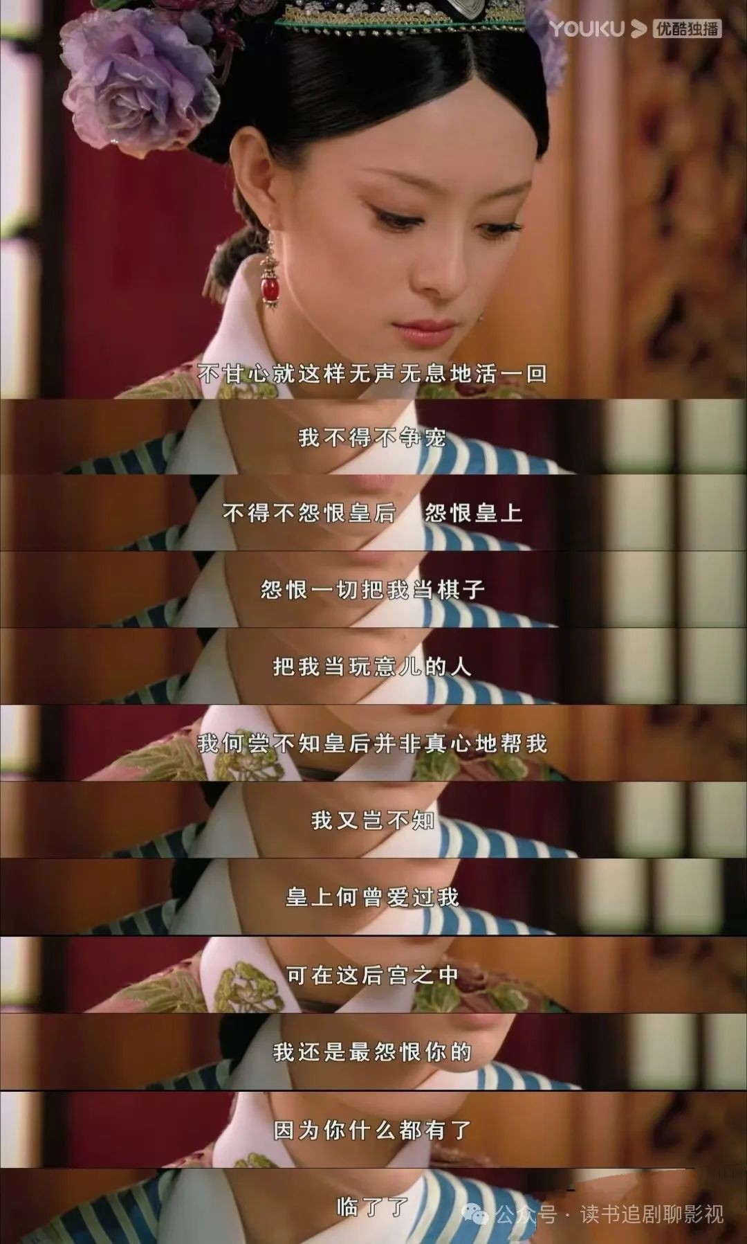 后宫女人都知道皇帝对她们只有宠没有爱,但谁都不敢忤逆皇帝,谁都不敢说出实情。只有安陵容在此刻说出了真话。