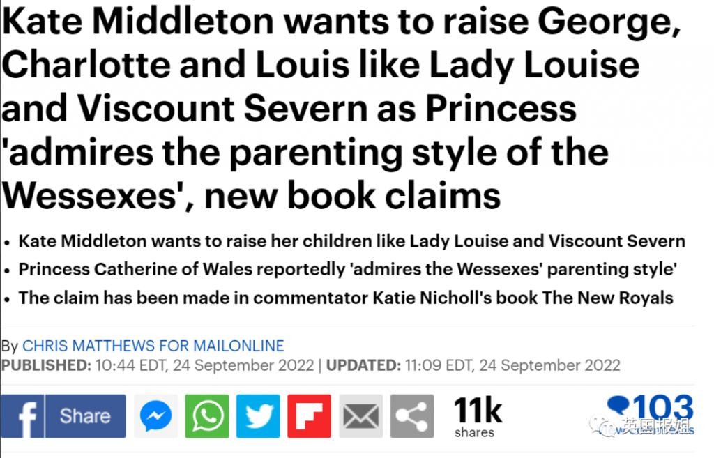 " 凯特很欣赏威塞克斯夫妇的育儿方式。"