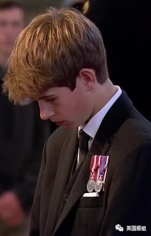 他表情肃穆,低垂下头,在数百万民众面前公开致敬故去的奶奶,在亲人逝去的痛苦中却表现得克制而尊重,远超 14 岁的成熟。
