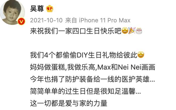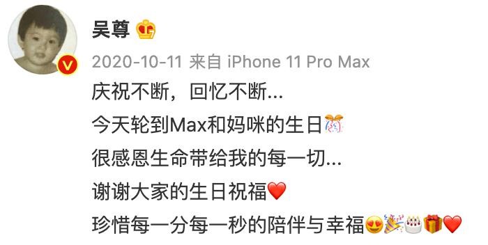 巧合的是,吴尊老婆生日只比吴尊晚一天,更巧的是,吴尊儿子生日也正好跟妈妈同一天,也就是说,一家人生日都挤在这两天了。