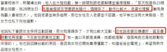 本人回应是 " 喝多了所以动作比较大 ",还搬出 " 不反对跟异性互动 " 的老婆试图堵住网友口舌。