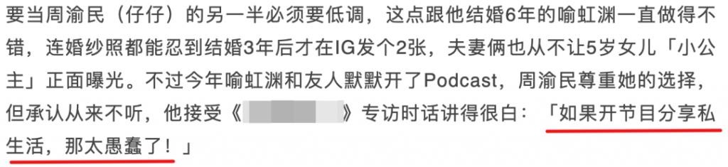 记者采访周渝民,回说从来不听老婆的播客:" 如果开节目分享私生活,那太愚蠢了!"