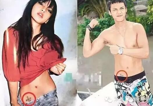 Baby另一处纹身在大腿内侧,是一组神秘字母,纹在这样私密敏感的部位又代表着什么意义呢?当然,有时候纹身并不一定有爱的意义,纯粹为了美,个人爱好也是有的。Baby脚上纹的樱花图案,一度成为女孩子们追捧的纹身热图。在九十年代的港台剧里,纹身一般出现在陈浩南似的黑社会人物身上。进入21世纪,纹身逐渐成为一种装饰,潮流,时尚,有着跟女人戴耳环,男人带手表一样的意义,纹得好的还能增添几分性感和魅力。尤其是明星,作为时尚潮流先锋,纹身更纹出了与众不同和销魂,据说有些纹身所在的敏感部位,平时一般人看不见。让人好奇心泛滥,想一探究竟。