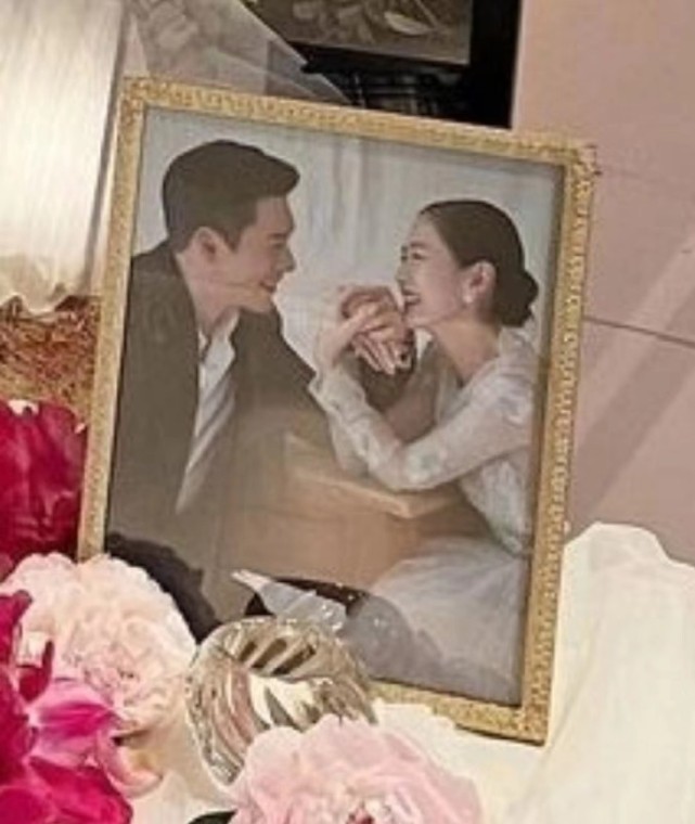 两人的这组婚纱写真被用心摆放在婚礼仪式现场,每一帧画面都是甜蜜四溢,像极了偶像剧中的浪漫场景,据参加婚礼的宾客透露,婚礼现场不但有两人的高清婚纱美照,配备的BGM更是相当抓耳,即电视剧《爱的迫降》中的OST,两人因为这部剧结缘定情,所以这部作品势必对两人而言具有非同一般的意义。