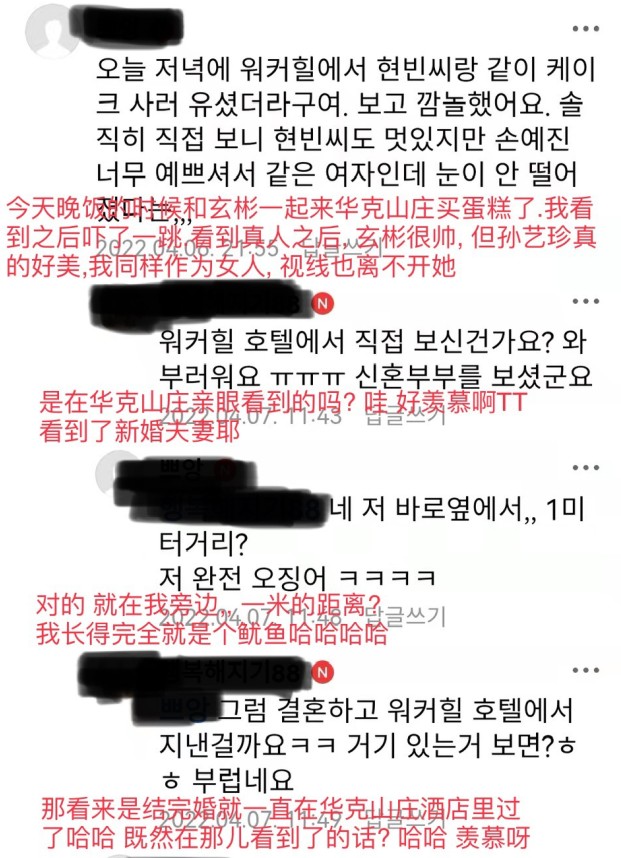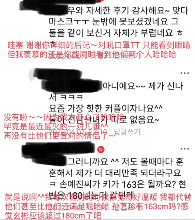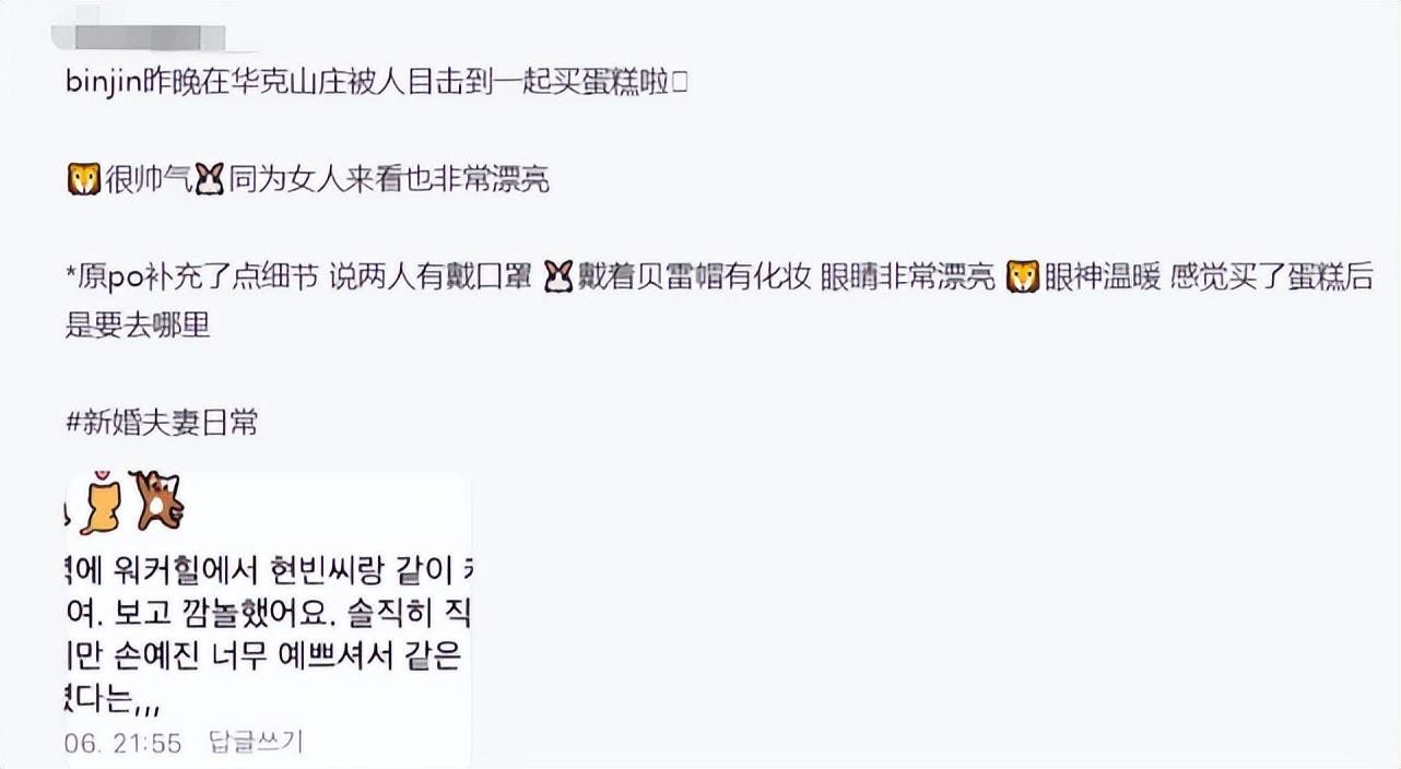 鉴于两人着装正式,该网友推断两人购买完蛋糕后大概率还有其他的行程,除此之外,这位网友在与友人的聊天记录中不忘感叹玄彬与孙艺珍的确相当登对,看来有种童话故事照进现实的梦幻感觉。