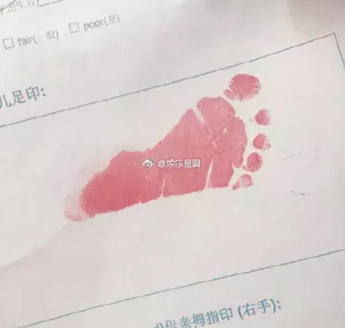还晒出了宝宝的脚印照。