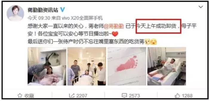 感谢大家一直以来的关心,蒋老师@蒋勤勤 已于今天上午成功卸货,母子平安!最后送你们一张待产时仍不忘往嘴里塞东西的吃货蒋