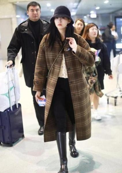 第六 关晓彤的穿搭,特别是关晓彤的这一身穿搭深色的格纹呢子大衣,显得非常的活泼可爱,温柔甜美。再加上这双独特的英伦式靴子效果更好,真是又简单,又能显示气质。