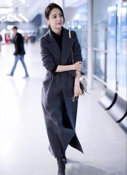 第二 佟丽娅的穿搭,烟灰色的呢子大衣本来就是带有气质的颜色。特别是这种长到脚踝的大衣,特别能够显示女人优雅的气质。简简单单一身只有三种颜色,既简单又大气。