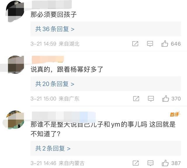 不少网友在得知此事后纷纷喊话杨幂让她一定要夺回孩子的抚养权,还有网友嘲讽刘丹每次只会说儿子与杨幂的事情,这次就是不知道了,更有甚者直言刘丹的好感败光了。