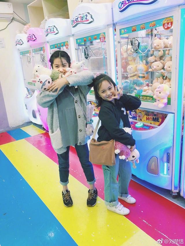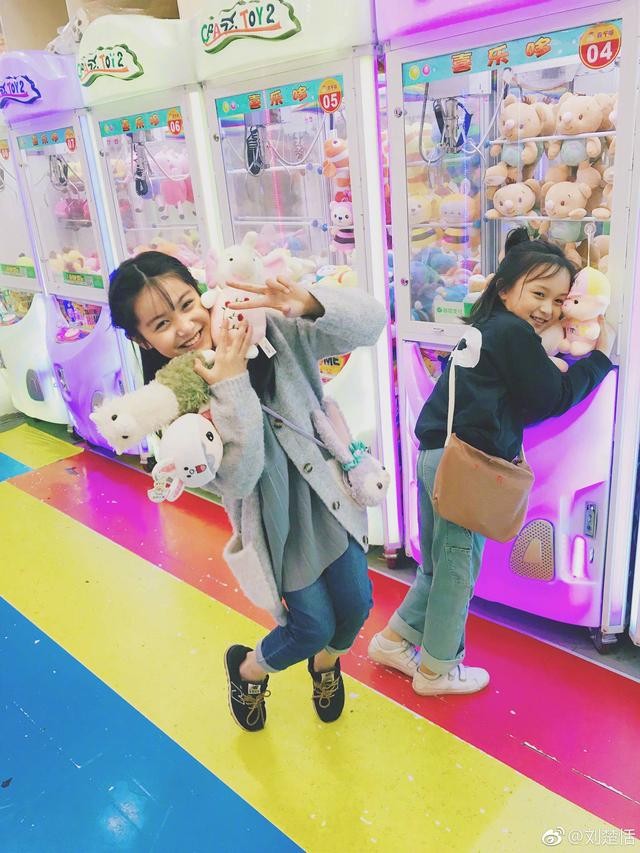 前几天,她发了一条微博,庆祝和小伙伴张籽沐一起抓到了很多娃娃,还晒了很多自拍,俩姑娘抱着玩具笑的那叫一个开心,果然童年是最快乐的时光~