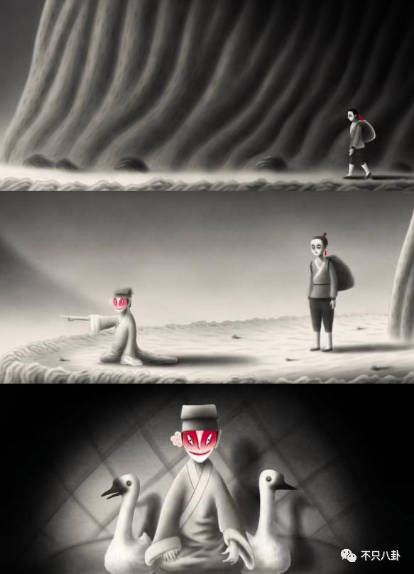 美术风格也剑走偏锋:素描与中国水墨韵味相结合,色彩基本只有黑白红三种。却也有种难得的东方叙事中 " 神秘浪漫、引而不发 " 的美感 ↓