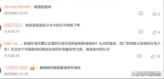 在一众网友们看来,陈晓当下不仅是小生里头号帅哥,而且他的演技还在线,这次他能在电视剧导演大会上获得 " 年度男主角 " 大奖,还说明他的实力是深受导演们认可的。
