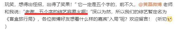 之前谢涤葵在微博上提到,黄磊给他说五个字的节目名会红。