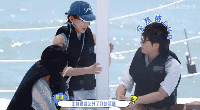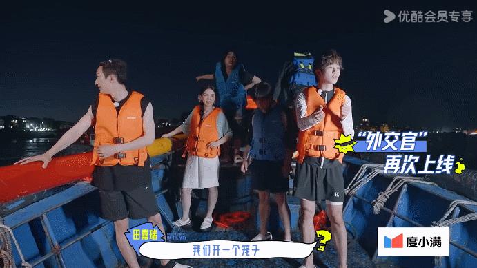 坐在一个颠到不行镜头都在晃的船上出发,导演还要给大家说," 现在你们坐在豪华游轮上 ……" 众人(敷衍):" 哦,好豪华哦。"