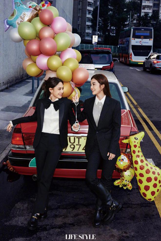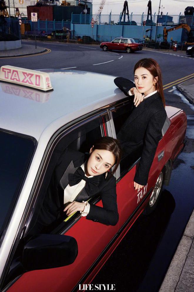 封面上,街头一辆红色出租车,蔡卓妍(阿 Sa)与钟欣潼(阿娇)穿着黑色西装探出车窗,又酷又飒。