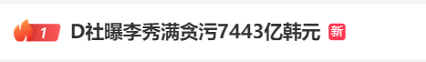 17日,“D社曝李秀满贪污7443亿韩元”话题登上新浪热搜榜第一。