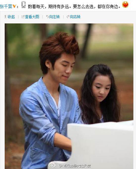 MIKI在微博中写道:数着每天,期待有多远。要怎么去选,都在你身边。并晒出了与张木易坐在钢琴前的合照,张千巽还许下誓言16岁时就嫁给张木易。