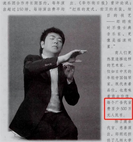 除了频繁上综艺外,郎朗还因为代言的事情遭到了许多指责,自从多场演奏会被取消后,郎朗就开始频繁地接代言,每一笔代言费都堪称天价,最让人感到不舒服的是只要钱到位,郎朗什么代言都敢接手。