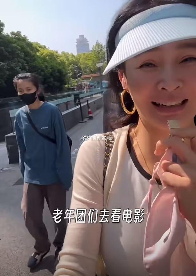 于明加一家四口驾车赶到公婆家吃完午饭后,便一同步行前往附近商场的电影院。观影的道路上,她还俏皮称“我们是青少年观影团”,自认“团长”在前面带路,一家人有说有笑;走在妈妈后面,穿白色低胸装搭灰色开衫的小姑娘,她是于明加14岁长女名叫“萌姐”,稍显成熟。