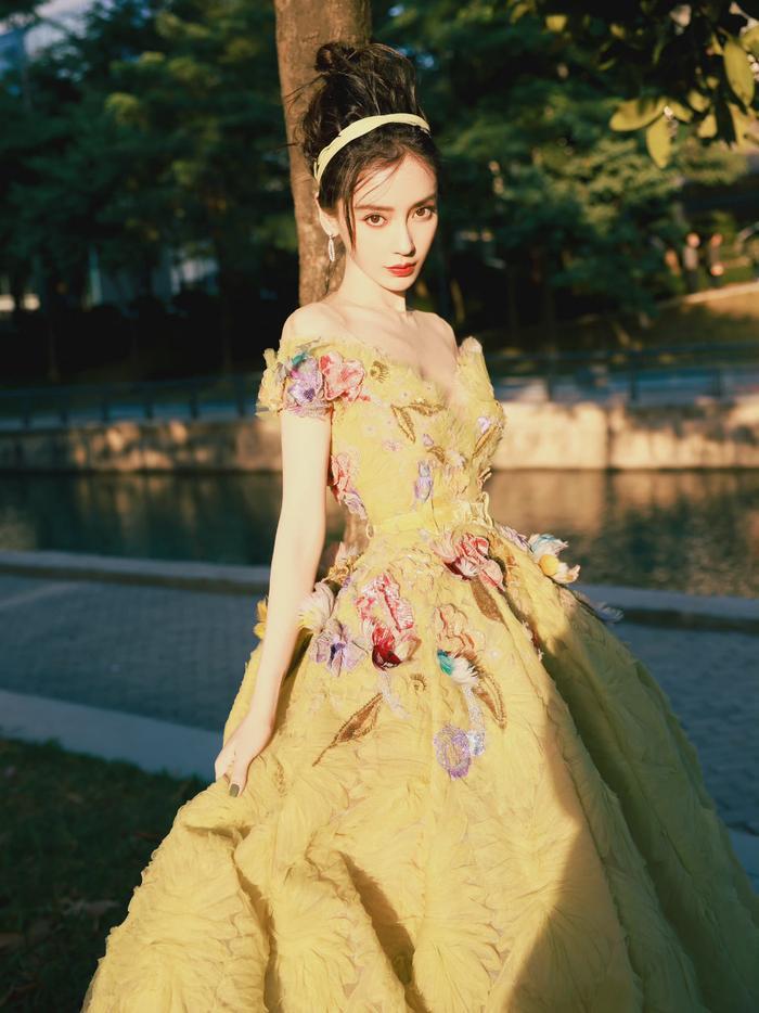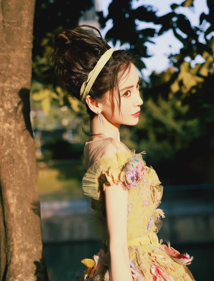 11月13日,女星杨颖现身时尚活动,绝美造型引发网友热议。32岁的杨颖身穿一件深V草绿色公主裙,罕见大秀性感。她的腰肢非常纤细,完全不像是已经生育过孩子的身材,整个人都洋溢着少女的气息。