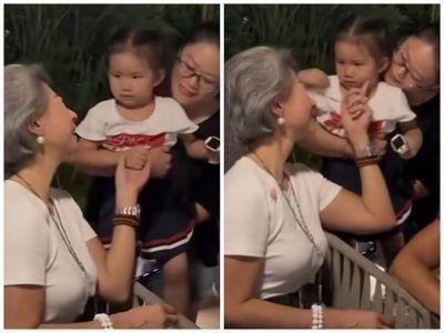 在公园里,当有粉丝抱着孩子向他们打招呼时,叶倩文表现得非常亲切,她逗弄着孩子,用手摸脸、牵住孩子的手,展现出对孩子的喜爱。然而,林子祥看到这一幕后,眼神却转向了别处,显得有些无所适从和尴尬。