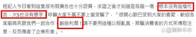 不信就看大 S 方的最新回应,话里话外的关键全在具俊晔很受喜爱,欢迎品牌代言来跟我们一起合作,创造利润——我们缺钱了,赶紧搞出点争议话题来炒作点热度 " 忽悠 " 一波了啦。
