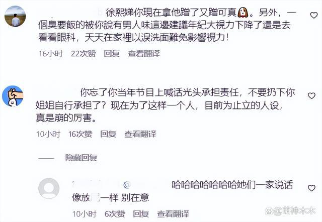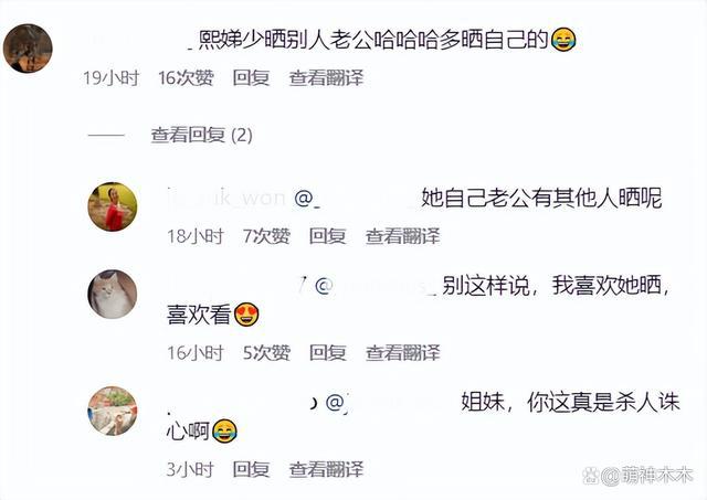 对此,网友的嘲讽也是花式百出,一问一答颇有趣味,只见一人说:" 熙娣,少晒别人老公,多晒自己的 ",一人回:" 她老公有其他人晒呢 " ——哎哟,杀人诛心呢,和当初小 S 老公被曝私生子,网友直接跟小 S 留言恭喜她成了嫡母有了庶长子有着异曲同工之妙 ……