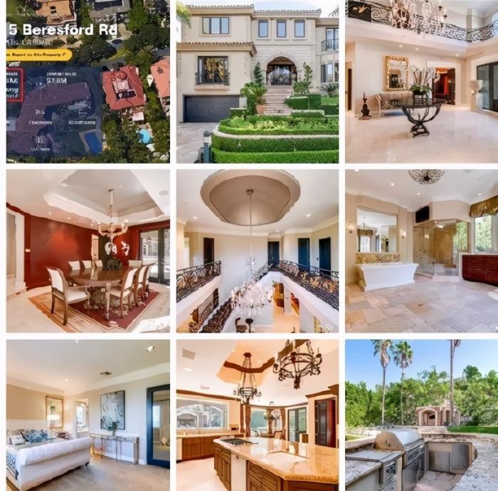 同时该豪宅的具体布局和部分内景也随之被晒出,豪宅面积很广,四周绿植环绕后花园、泳池齐备,装潢富丽堂皇,水晶吊灯、大理石材料,甚至连栏杆的细节处理都辉煌耀眼。